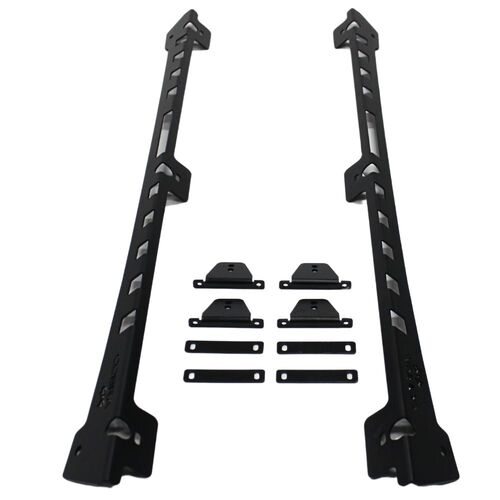 This rack is made tough and durable, perfect for outdoor adventures as well as commercial use. Great for carrying your jack, awning, tracks, rooftop tent and much more. The flat design is perfect to keep it nice and slick to be able to still get into your garage or underground car parks.