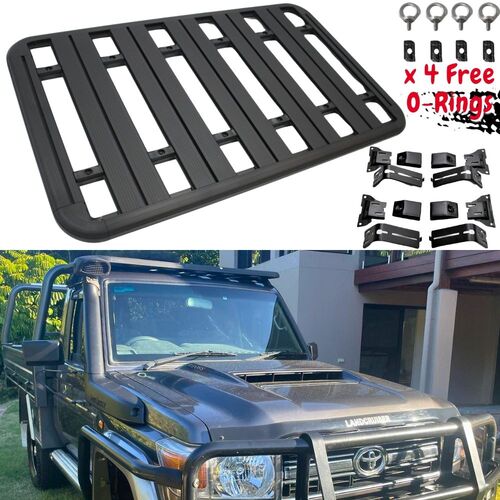 Cobra 4x4 Flat Roof Rack Aluminium Fits Landcruiser 79 Series Single Cab 85 x 142cm Platform Rain gutter Steel Brackets