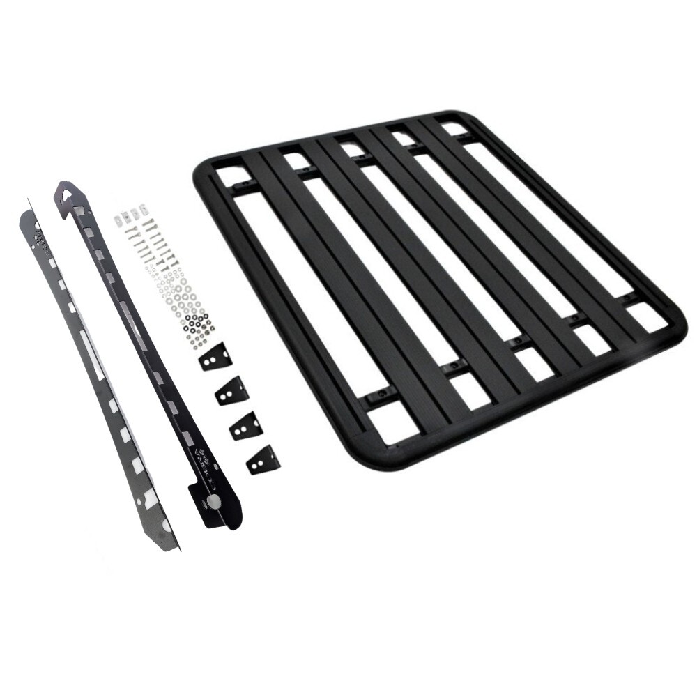 This rack is made tough and durable, perfect for outdoor adventures as well as commercial use. Great for carrying your jack, awning, tracks, rooftop tent and much more. The flat design is perfect to keep it nice and slick to be able to still get into your garage or underground car parks.