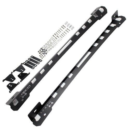 This rack is tough and durable, perfect for outdoor and commercial outdoor adventures. Great for carrying your jack, awning, tracks, rooftop tent and much more. The flat design is perfect for keeping it nice and slick to be able to still get into your garage or underground car parks.