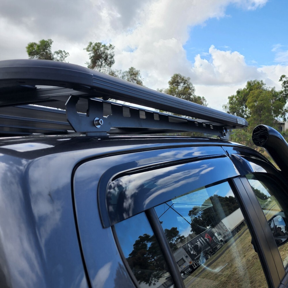 Cobra 4x4 Aluminium flat roof rack with Steel Brackets for longer-lasting protection and durability. The brackets are made specifically for Hilux dual cab models from late 2005 to 2024 models.