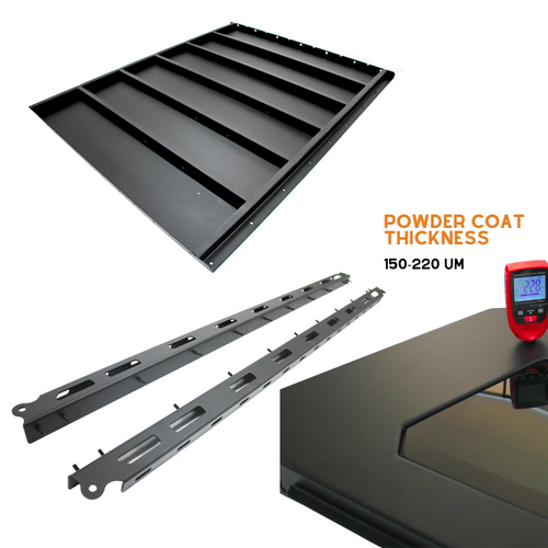 Efficiency & Versatility: Lightweight design reduces fuel consumption while accommodating rooftop tents, awnings, and gear. It's water and dust-sealed, built from durable thick powder-coated aluminum.