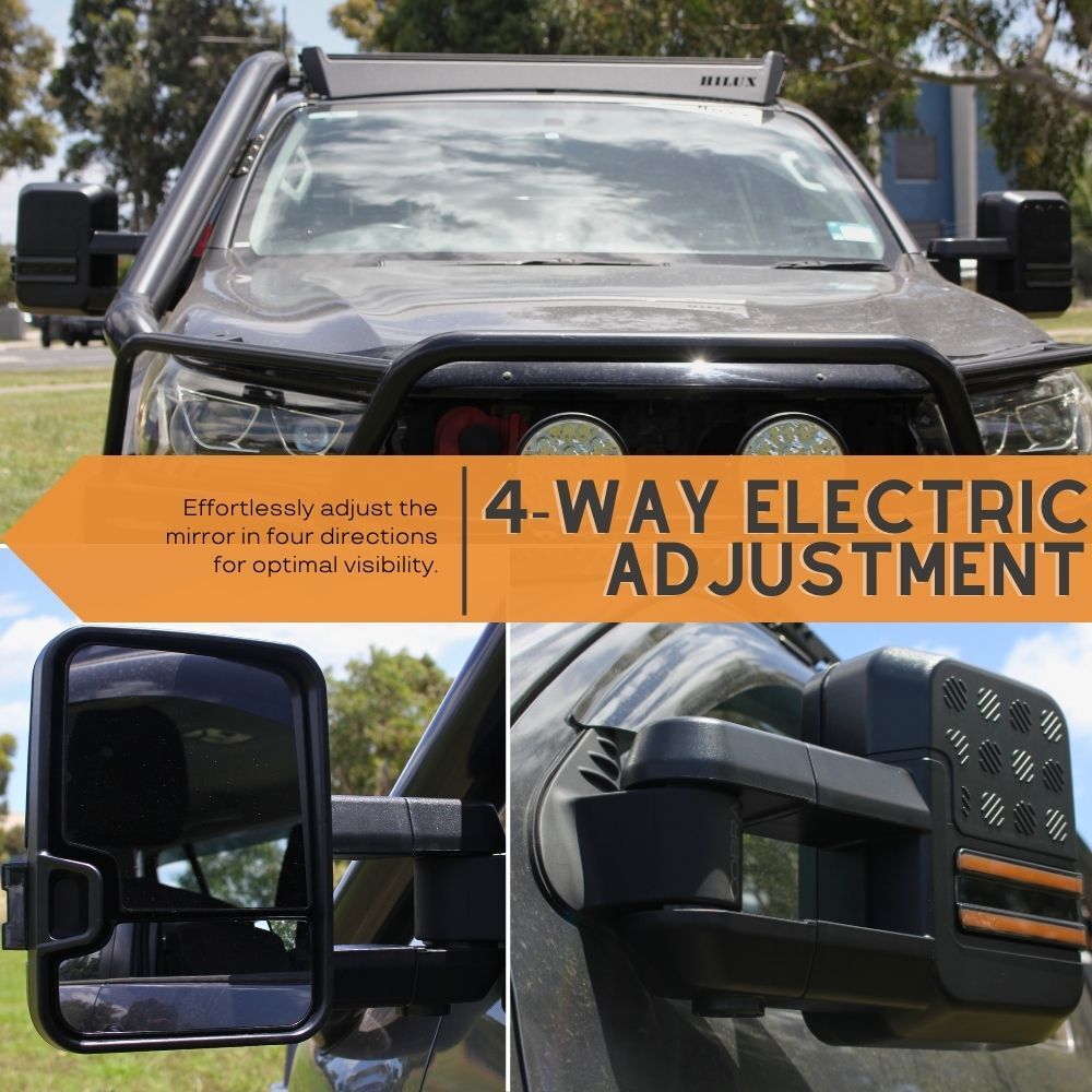 Enhance your Toyota Hilux N80 (Late 2015 - 2023) with the premium Gen 2 Extendable Electric Towing Mirrors—the ultimate solution for towing boats, trailers, or caravans without relying on clip-on mirrors that provide limited visibility. These mirrors are also ideal for tradies upgrading to a rear wide tray, offering enhanced safety and convenience.