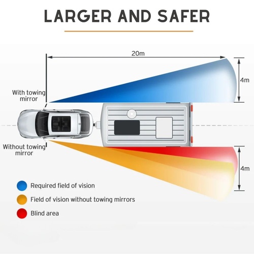 • 200mm wider extension compared to factory mirrors