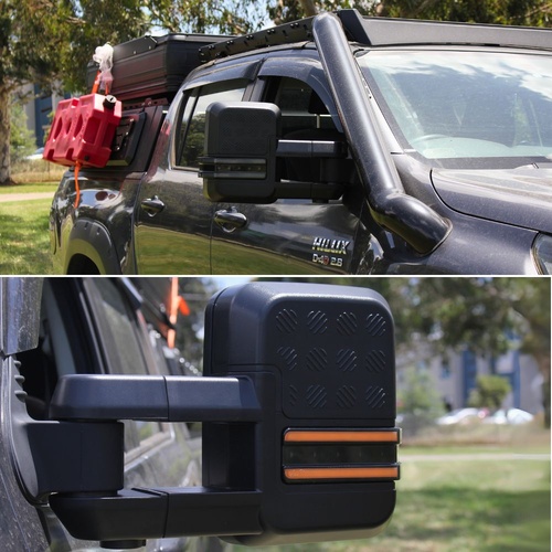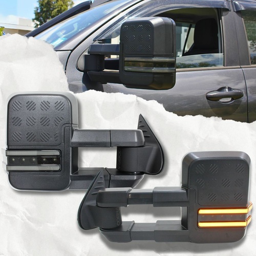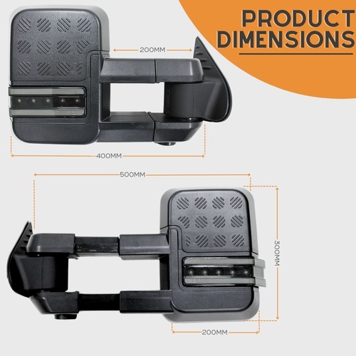 Cobra 4x4 Gen 2 Extendable Towing Mirrors Suit Nissan Navara D40 2005 - 2015 Black Electric LED Indicators Caravan Trailer