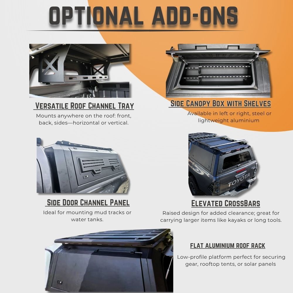 • Side Canopy Boxes with Shelves (Left/Right, Steel or Aluminium)