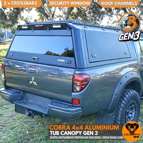 Cobra 4x4 Gen 3 Aluminium UTE Tub Canopy fits Mitsubishi Triton MN 2009 - 2014 Tradie Black Aluminum Heavy Duty