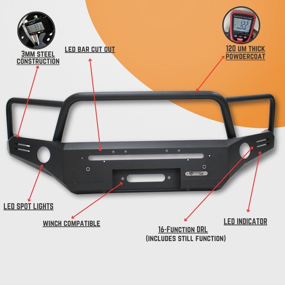 The new Cobra 4x4 Gen 3 Heavy Duty Triple Hoop Bullbar has been completely redesigned to be tougher, sleeker, and more durable than ever! Built to take on the top competitors in the market—without the sky-high price tag, this bar is made for off-road warriors who demand strength, functionality, and style.