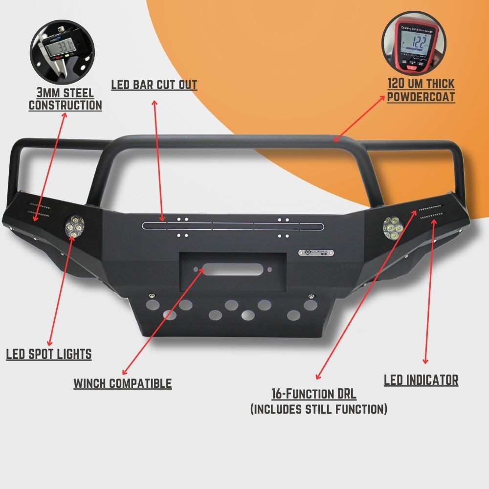 The new Cobra 4x4 Gen 3 Heavy Duty Triple Hoop Bullbar has been completely redesigned to be tougher, sleeker, and more durable than ever! Built to take on the top competitors in the market—without the sky-high price tag, this bar is made for off-road warriors who demand strength, functionality, and style.