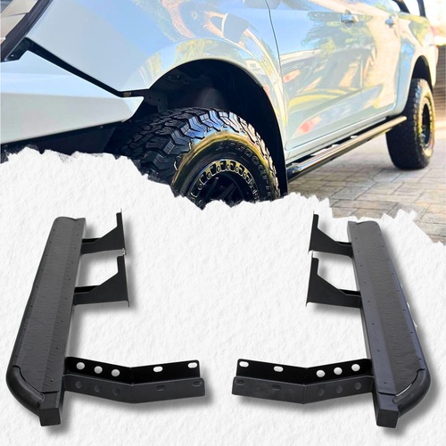 Cobra 4x4 Heavy Duty Angled Rock Sliders Fits Holden Colorado 2012 Onwards Side Steps Black Steel