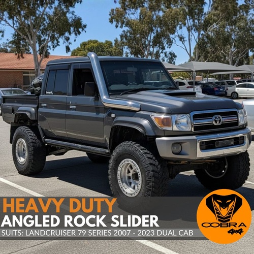 Cobra 4x4 Heavy Duty Angled Rock Sliders Fits Landcruiser 79 Series Dual Cab 2007 - 2023 Side Steps Black Steel