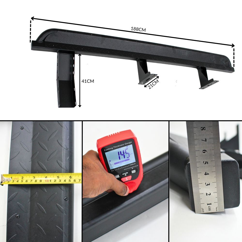 Made from Heavy-duty powder-coated Steel weighing in at 60kg total for both sides, these rock sliders are sure to impress.
