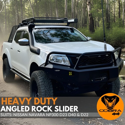 Cobra 4x4 Heavy Duty Angled Rock Sliders Fits Navara NP300 D22 D23 D40 Side Steps Black Steel