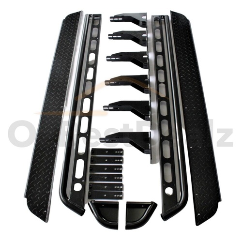 Professional installation is required. These rock sliders are attached directly to the chassis using U bolts for optimum protection. The arm brackets are adjustable. We also include a steel cover plate that can be installed on the top of the heavy-duty steps. Installing the plate is optional depending on the look you like to achieve. Does not include instructions.
