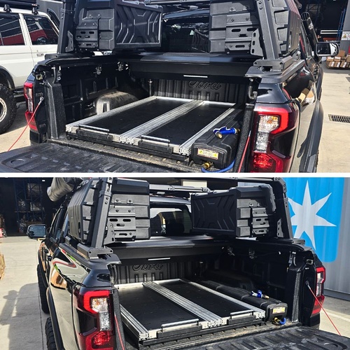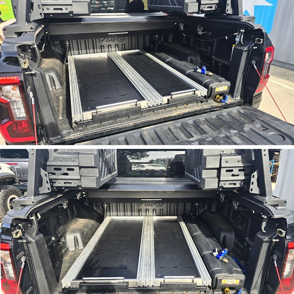 Professional installation is required to ensure proper setup. The drawers come pre-assembled and are ready for installation into your vehicle’s tub. Stainless steel screws are included for secure mounting. We’ve upgraded the bracket design shown in the video to create a universal fit for all tub sizes, making installation more versatile and straightforward. An extra hole can be drilled on the brackets if you like to use the second thread on the side of the tub sliders. The only additional components required are M8 nutserts. For a guide, please refer to the installation video provided.