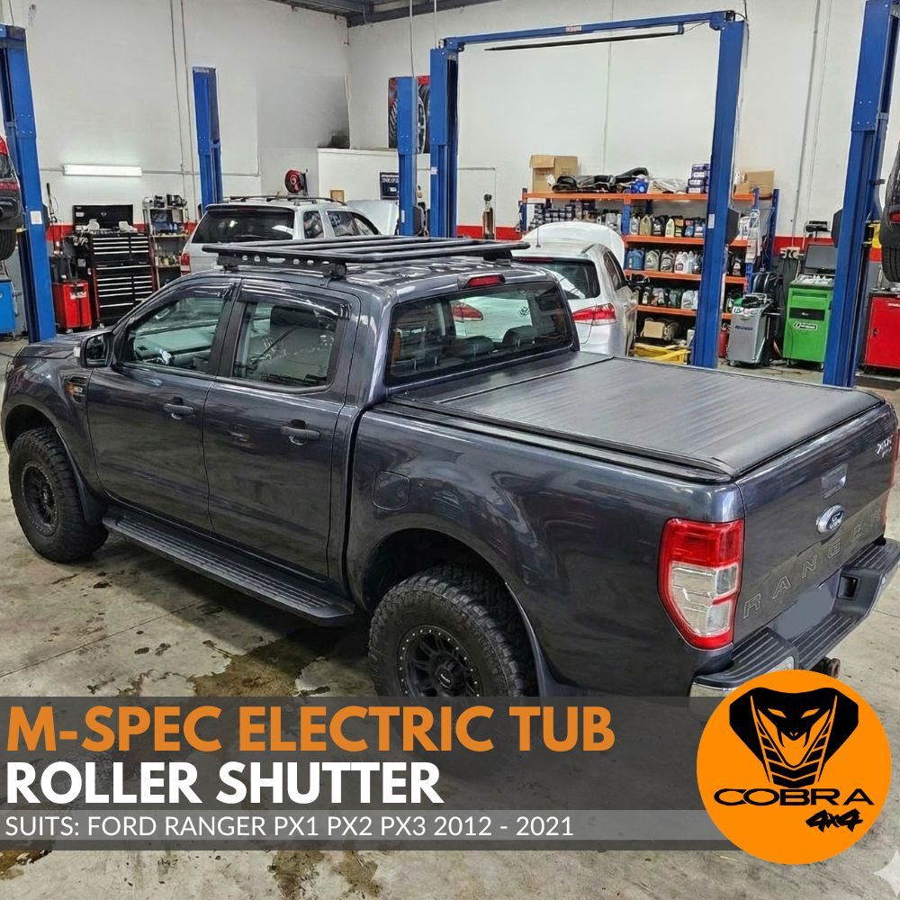 Cobra 4X4 M-Spec Electric Retractable Roller Shutter fits Ford Ranger PX PX2 PX3 2012 - 2021 Tub Tonneau Roll Cover Black Lid