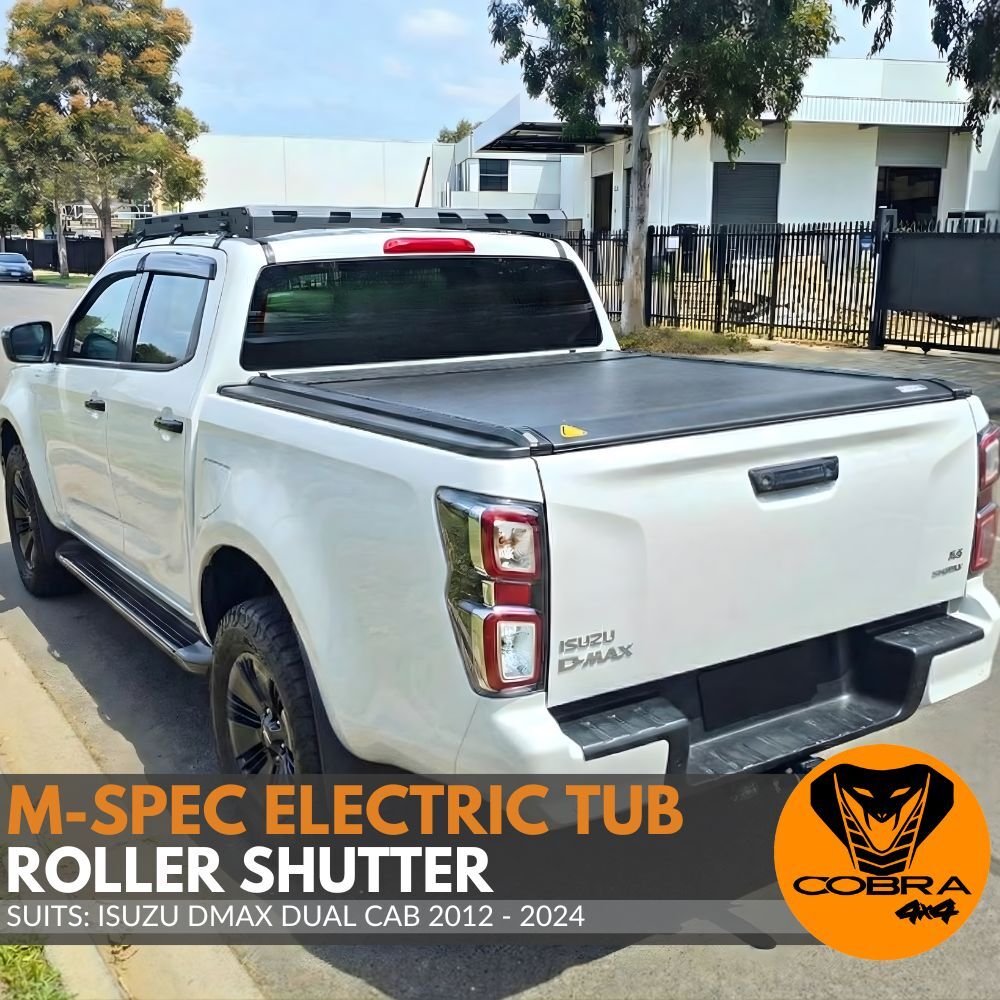Cobra 4X4 M-Spec Electric Retractable Roller Shutter fits Isuzu Dmax Dual Cab 2012 - 2024 D-max Tub Tonneau Roll Cover Black Lid