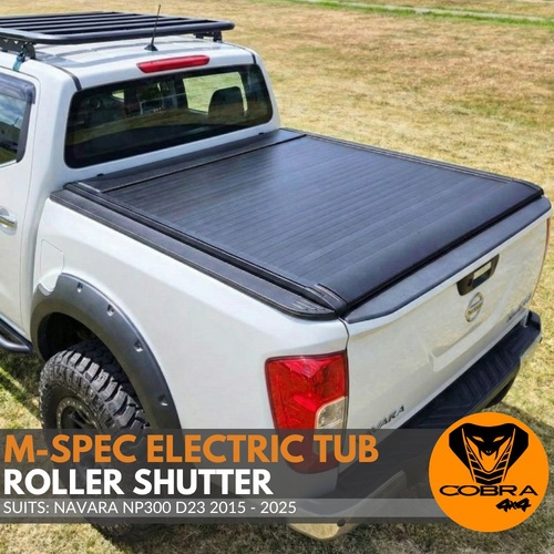 Cobra 4X4 M-Spec Electric Retractable Roller Shutter fits Navara NP300 D23 2015 - 2025 Tub Tonneau Roll Cover Black Lid