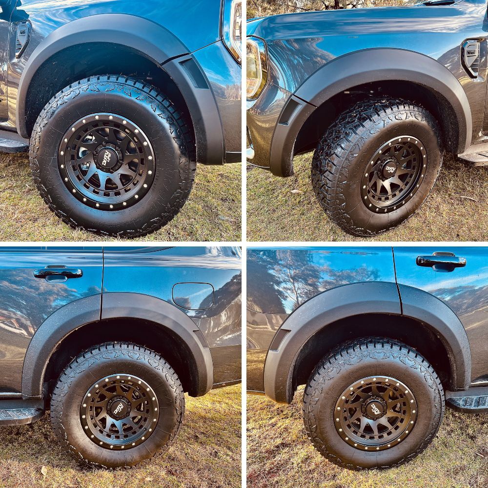 Upgrade your Ford Everest Next Gen 2022 onwards with the rugged and stylish Cobra 4x4 Matte Black OEM Raptor style flares, this 10-piece set is the perfect addition to enhance your vehicle's look and performance. Crafted with ultra-flexible and UV-resistant materials, these flares require no painting and won't fade over time. Take your Ford Everest to the next level with Cobra 4x4 flares, blending functionality and aesthetics seamlessly.