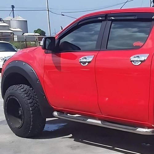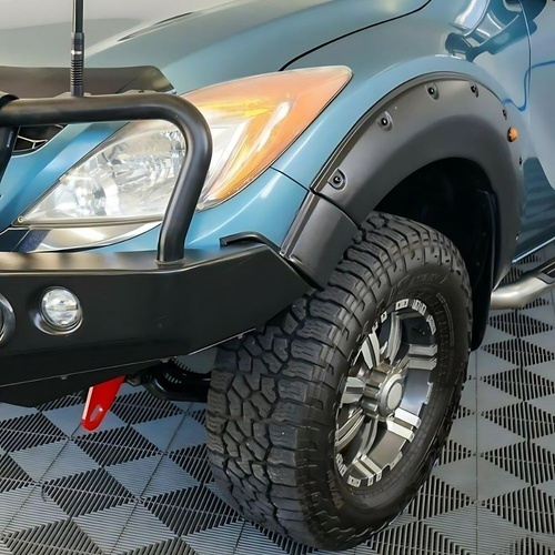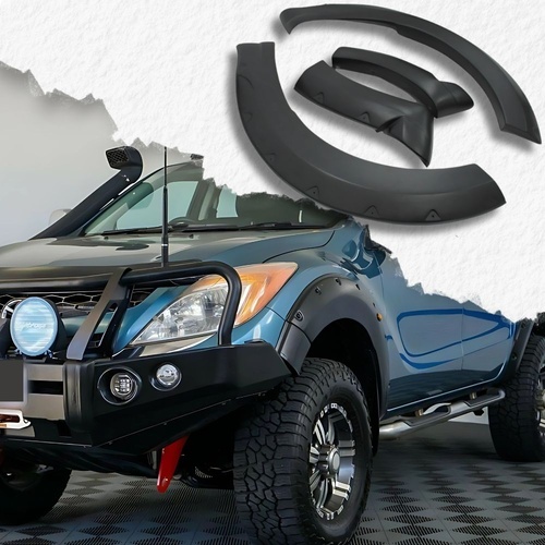 Installation: This item requires professional installation to ensure they are fitted correctly. They are installed by gluing to the guards and then screwed in from under. Drilling into guards is not required. Some mods and trimming may be required. If you like to use existing holes from under, you can drill new holes on the flares to match. Screws are for decorative purposes only. If your BT50 includes the side indicators on the guards, you will need to trim the flares to suit. Please contact us for images if required
