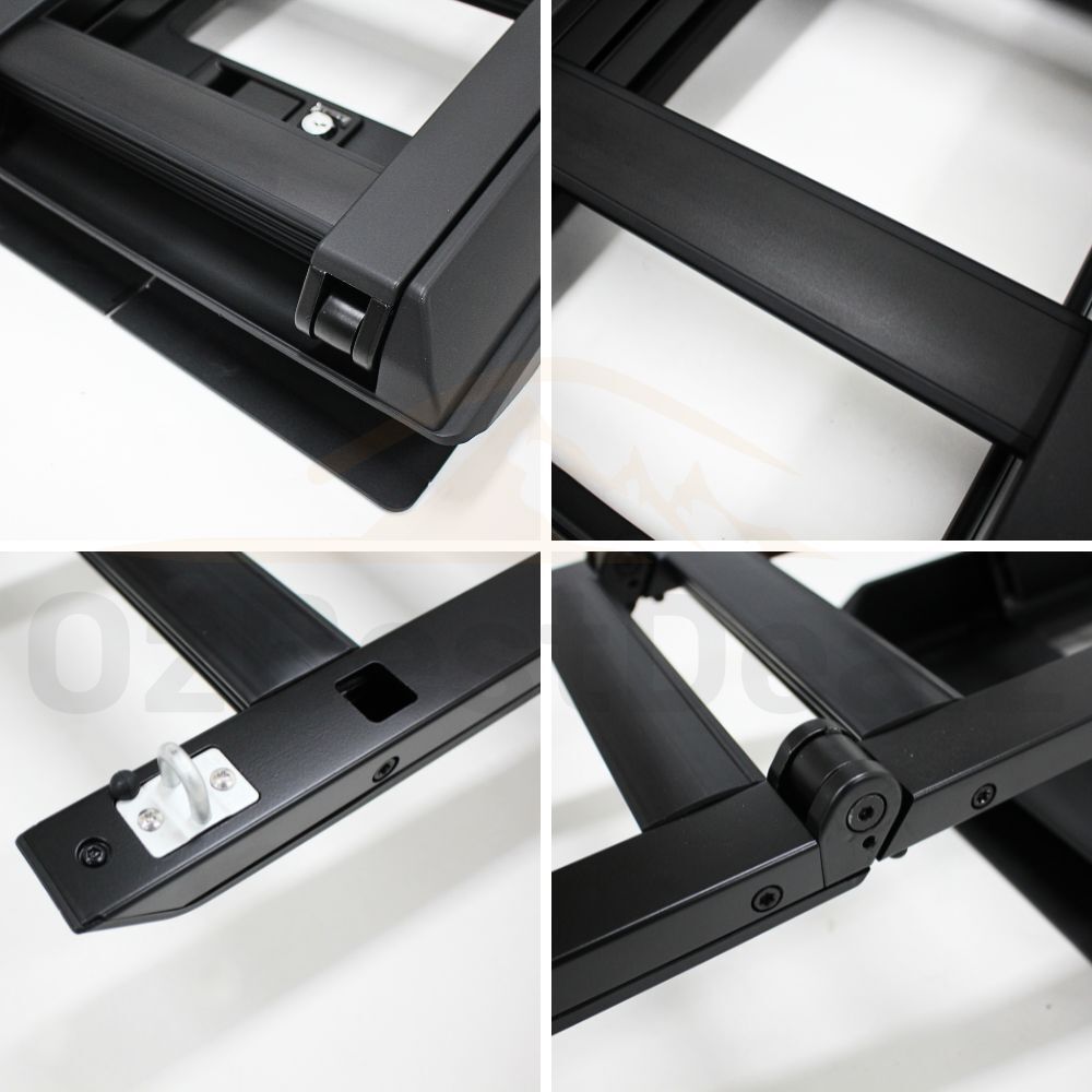 Cobra 4x4 Premium Aluminium Foldable Side Roof Ladder Suits Landcruiser Prado 250 Series Black Rack Step