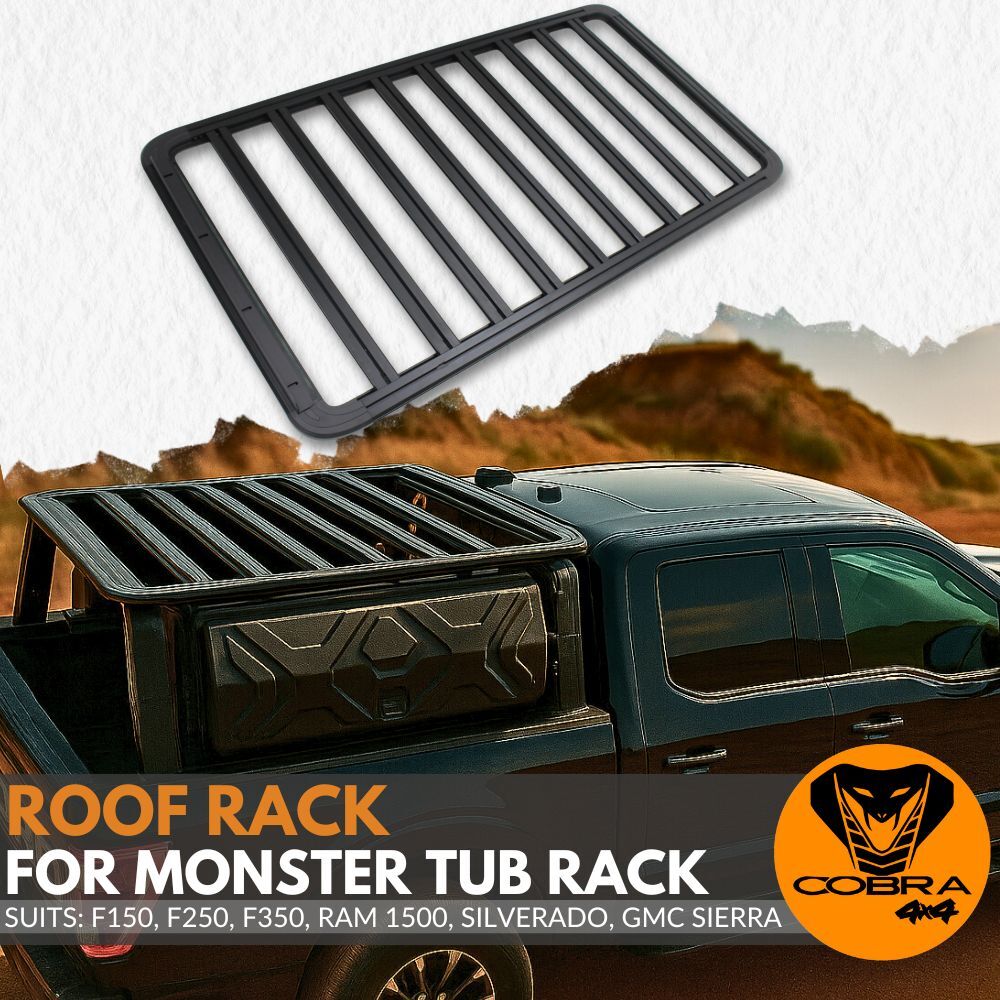 Cobra 4x4 Premium Aluminium Roof Rack, designed specifically for the Monster Tub Rack. Built from lightweight yet tough aluminium, this roof rack delivers superior strength without adding unnecessary weight. Perfect for carrying camping gear, tools, or adventure essentials — it’s the ultimate combination of style, durability, and functionality for every 4WD enthusiast.