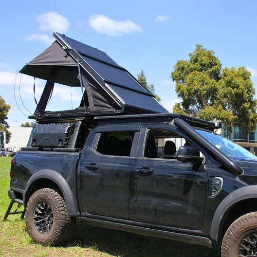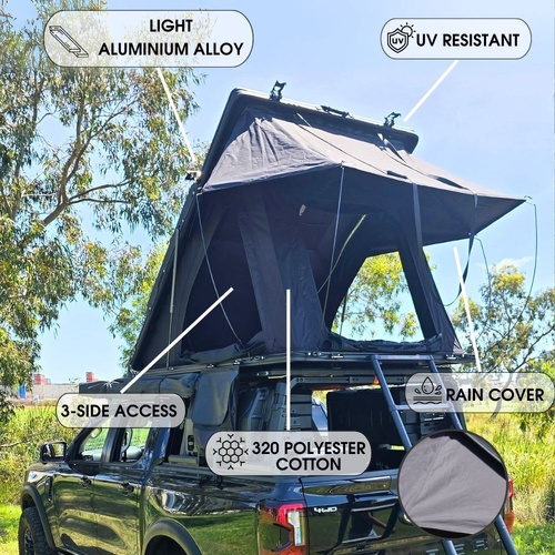 Cobra 4x4 Premium Summit 145 Low Profile Roof Top Triangle Tent Aluminium Alloy Hardshell 3 Person 320G Poly Cotton Ladder