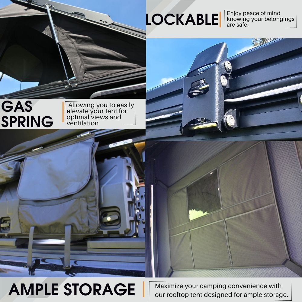 • Top-notch Water Protection: Boasting a Waterproof Rating of 5000mm and fortified with an automotive-grade rubber seal, our aluminum rooftop tent promises a dry and delightful camping experience, regardless of the weather conditions.