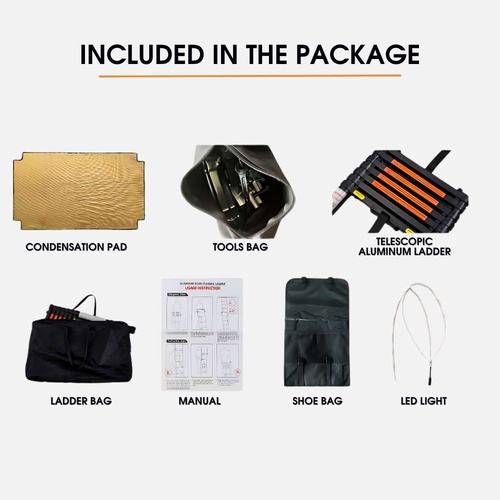 • Heavy duty ladder bag: Protect your rooftop tent's heavy-duty ladder with this durable and convenient ladder bag, ensuring safe and easy transportation