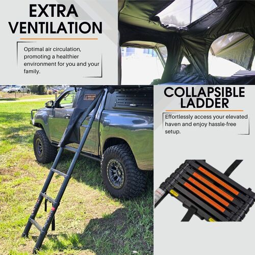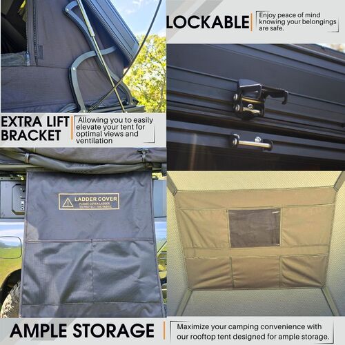 • Efficient Design: Crafted for portability, our rooftop tent is engineered to be lightweight, inclusive of all accessories and crossbars/roofrails capable of supporting up to 50kg.