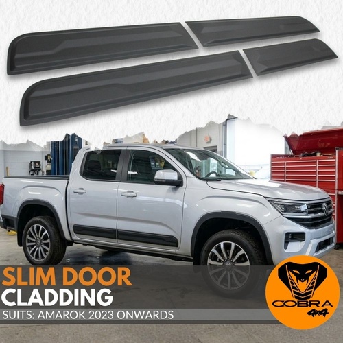 The Cobra 4x4 Slim Cladding is designed to suit Volkswagen Amarok 2023+ Next Gen Dual Cab models. This slimline design offers door protection without the bulky look of traditional large cladding, making it perfect for both off-road driving and everyday use.