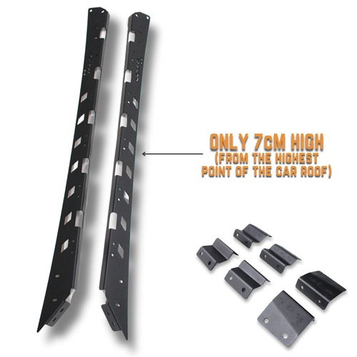 • This rack is only 70mm high, adding to the low profile design and making it one of the lowest platforms on the market, this rack will only increase the height of your car by roughly 6-7cm from the highest point of your roof