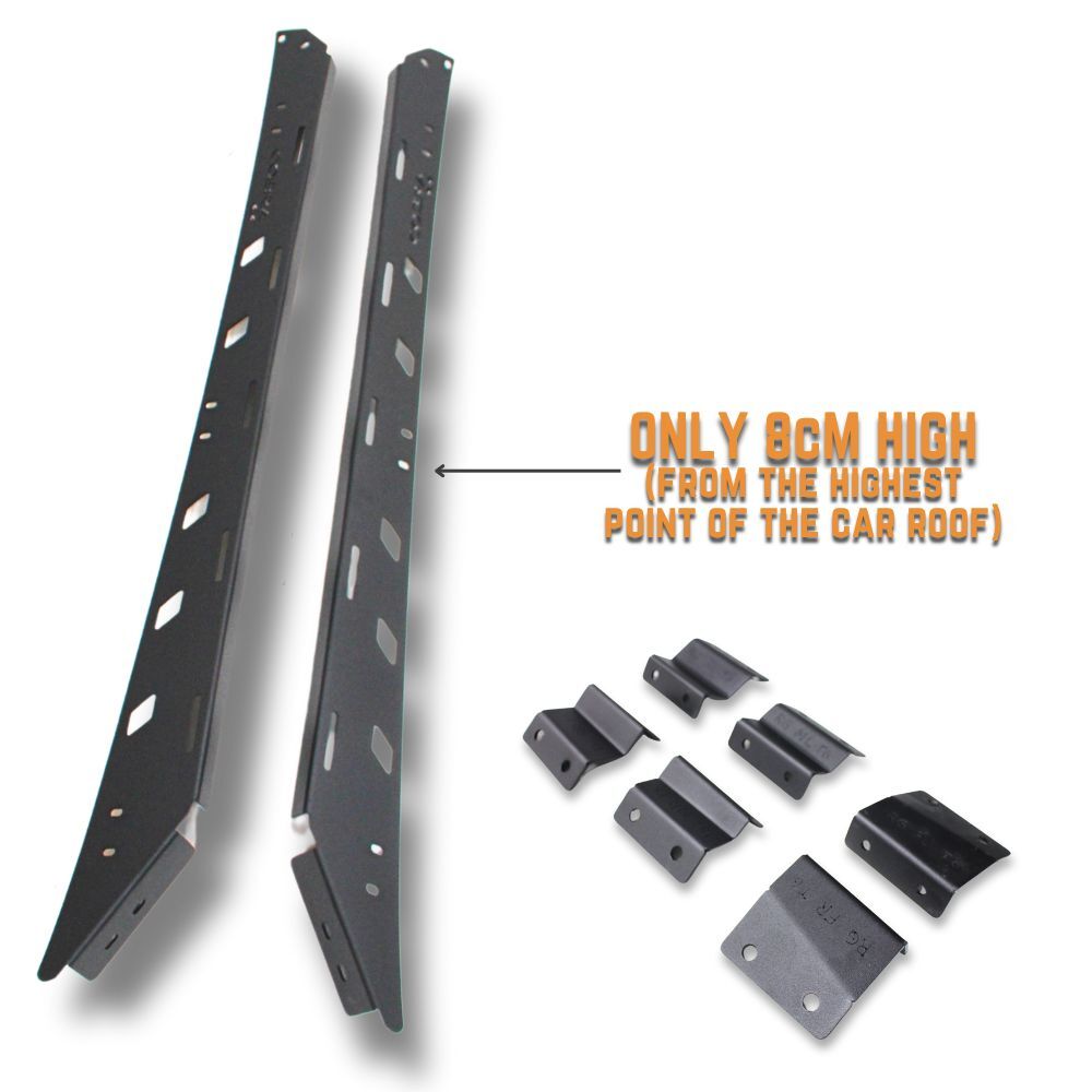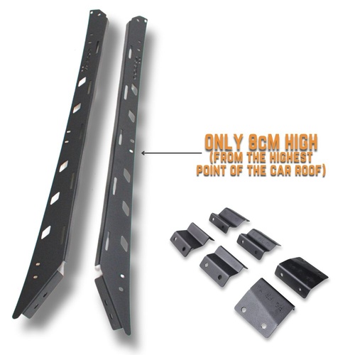 • This rack is only 80mm high, adding to the low profile design and making it one of the lowest platforms on the market, this rack will only increase the height of your car by roughly 6-7 cm from the highest point of your roof