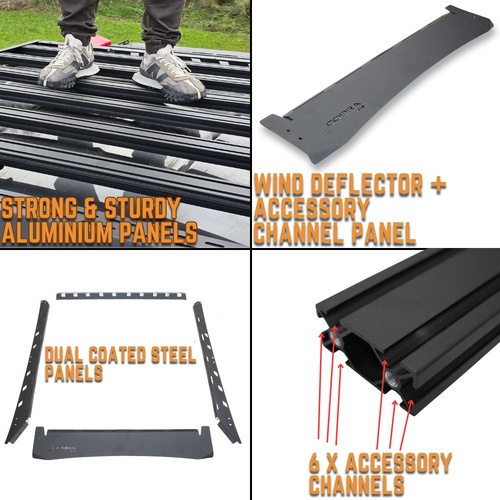 • 5 x Extra strong Aluminium panels with 6 x channels each. The strongest panels in the market showing an image standing on 1 panel. Each panel consists or 6 x channels for adding all the accessories you need using channel bolts. Rubbers are included for channels not in use
