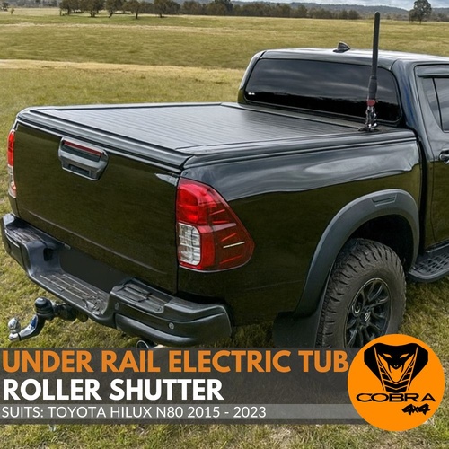Electric Retractable Under Rail Roller Shutter fits Toyota Hilux 2015 Onwards SR5 Tub Tonneau Roll Cover Black Lid