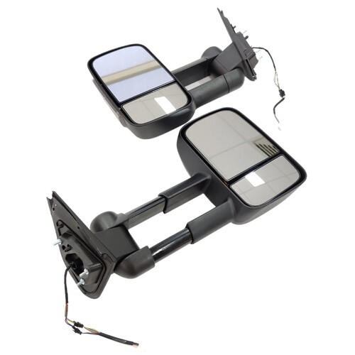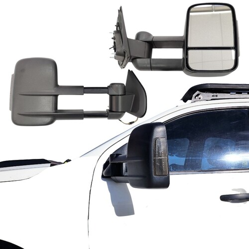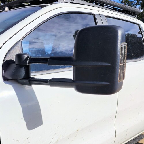 Extendable Towing Mirrors suit Isuzu Dmax 2021 RG Onwards Black Electric LED Indicators Caravan Trailer