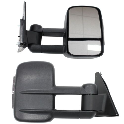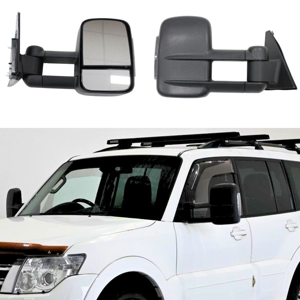 Extendable Towing Mirrors suit Pajero 2001 Onwards Black Electric LED Indicators Caravan Trailer