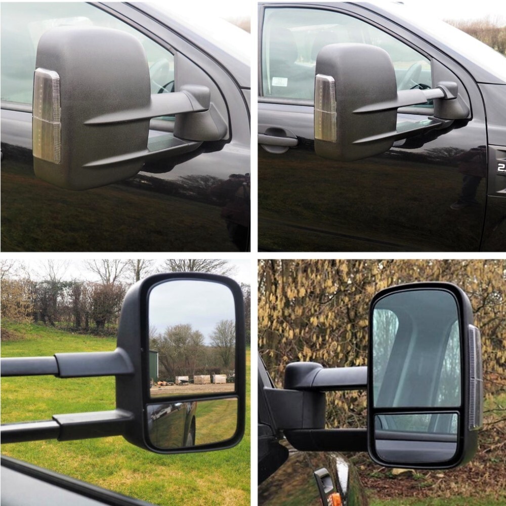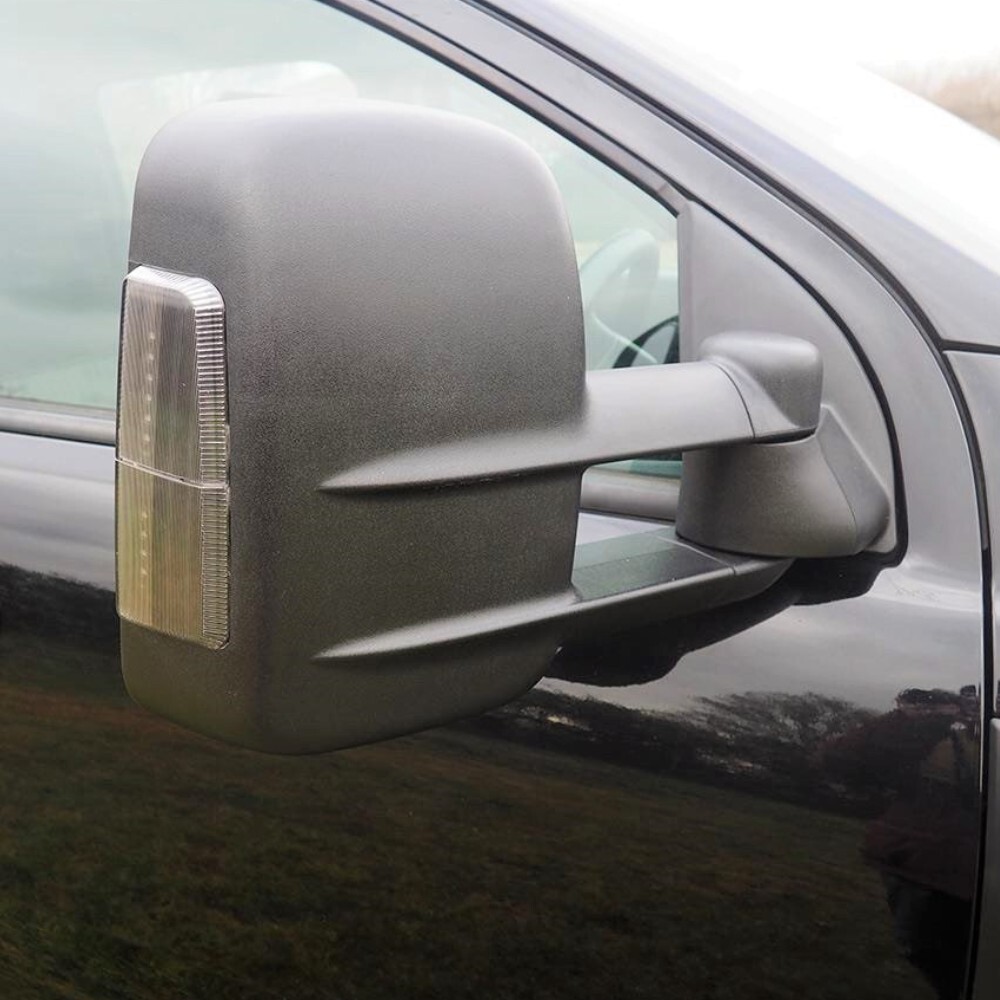 The mirrors are extendable up to 100mm when required extra length for towing, utilizing a sturdy slide, to give you a clear rear view whilst towing a large trailer or caravan. They can be easily pushed back in when not required to aid towing. These mirrors are 200mm wider extension compared to factory mirrors.