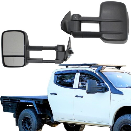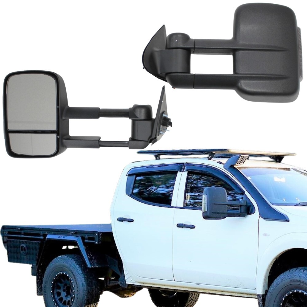 These Extendable Electric Towing Mirrors are an ideal replacement for the standard wing mirrors on the Triton MN ML 2006-2015. They can be extended up to 100mm for additional length while towing, using a sturdy slide, to provide a clear rear view when towing large trailers or caravans. When not in use, they can be easily pushed back in to assist with towing. These mirrors provide a 200mm wider extension than the factory mirrors.