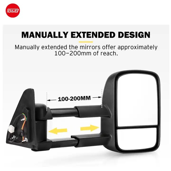 These mirrors are specifically designed for towing trailers, boats, caravans, and horse floats. They are built on a solid extension slide and offer stress-free fitting as a direct replacement for your original mirrors. With an increased range of 200mm over standard factory mirrors, they cover many blind spots. The lower mirror is a 90mm high x 200mm wide angle type.