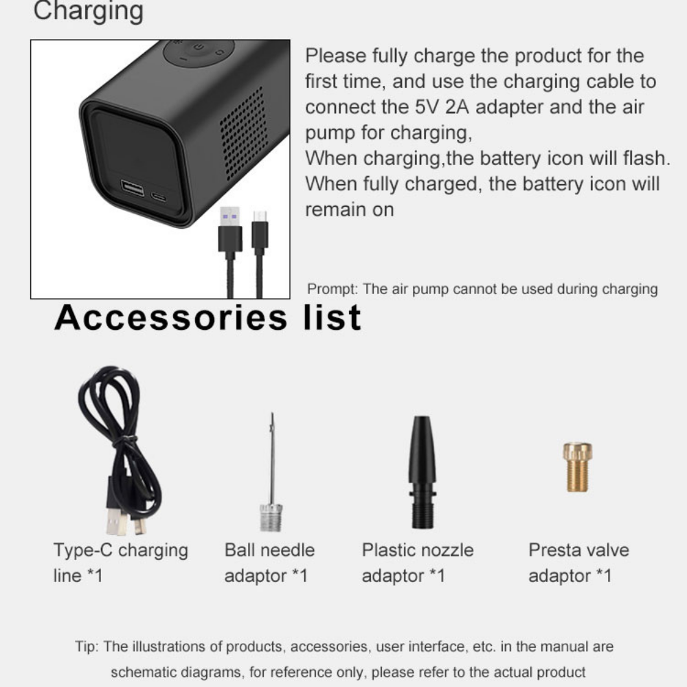 • Multi-functional: Inflate many objects and use as a power bank