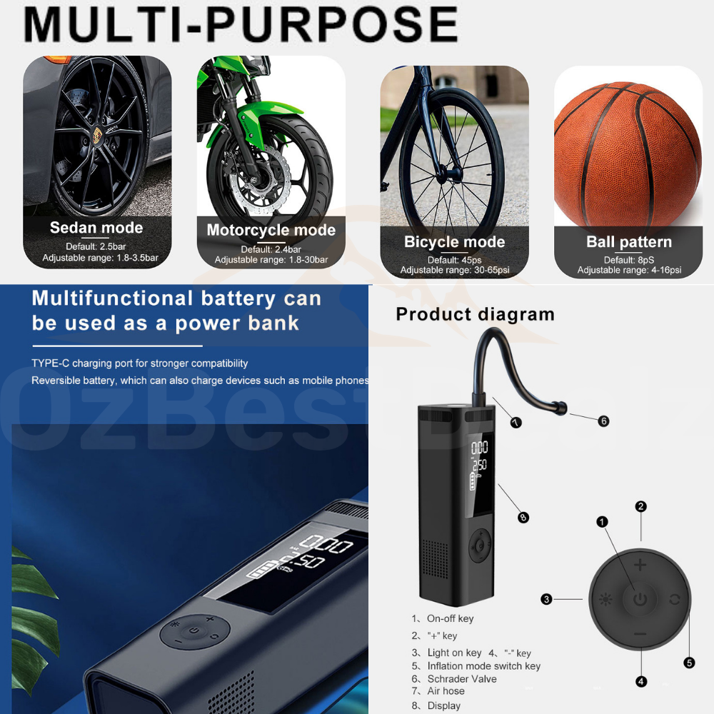 Perfect for emergency situations, this versatile inflator is a must-have for any adventurer. With a built-in LED digital screen, it can inflate a variety of objects including car and bicycle tyres, sports balls, and even power camping lights. It also doubles as a power bank with a 6000mAh capacity.