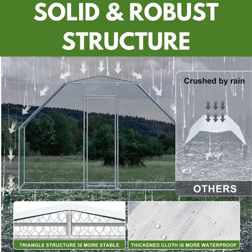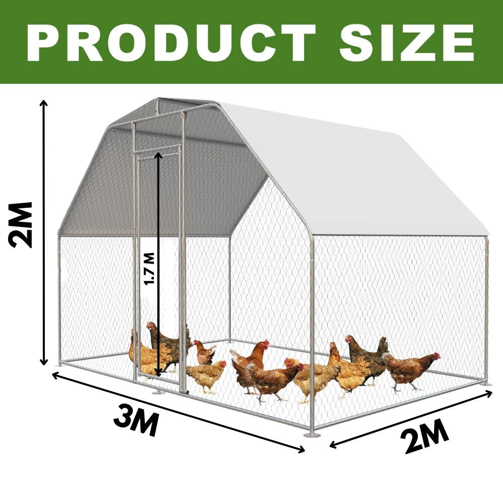 Looking for a spacious haven for your feathered friends? Look no further! Our premium chicken coop boasts an expansive 3m wide x 2m high x 2m deep space, providing ample room for up to 15 chickens or similar lovable critters. Crafted from durable galvanized steel, this coop is built to last, ensuring years of protection and comfort for your cherished flock.