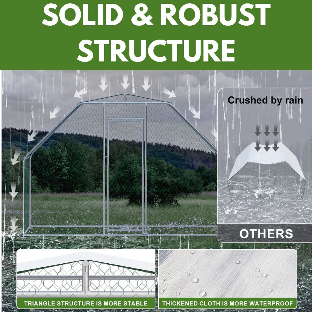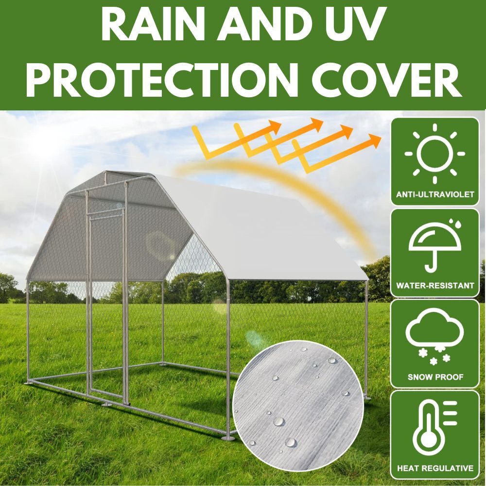 But that's not all! With a convenient walk-in design, accessing your coop has never been easier. Simply step inside through the secure door and experience the convenience firsthand. Plus, with the included PVC rain and UV ray cover, your poultry pals will stay cozy and dry, rain or shine.