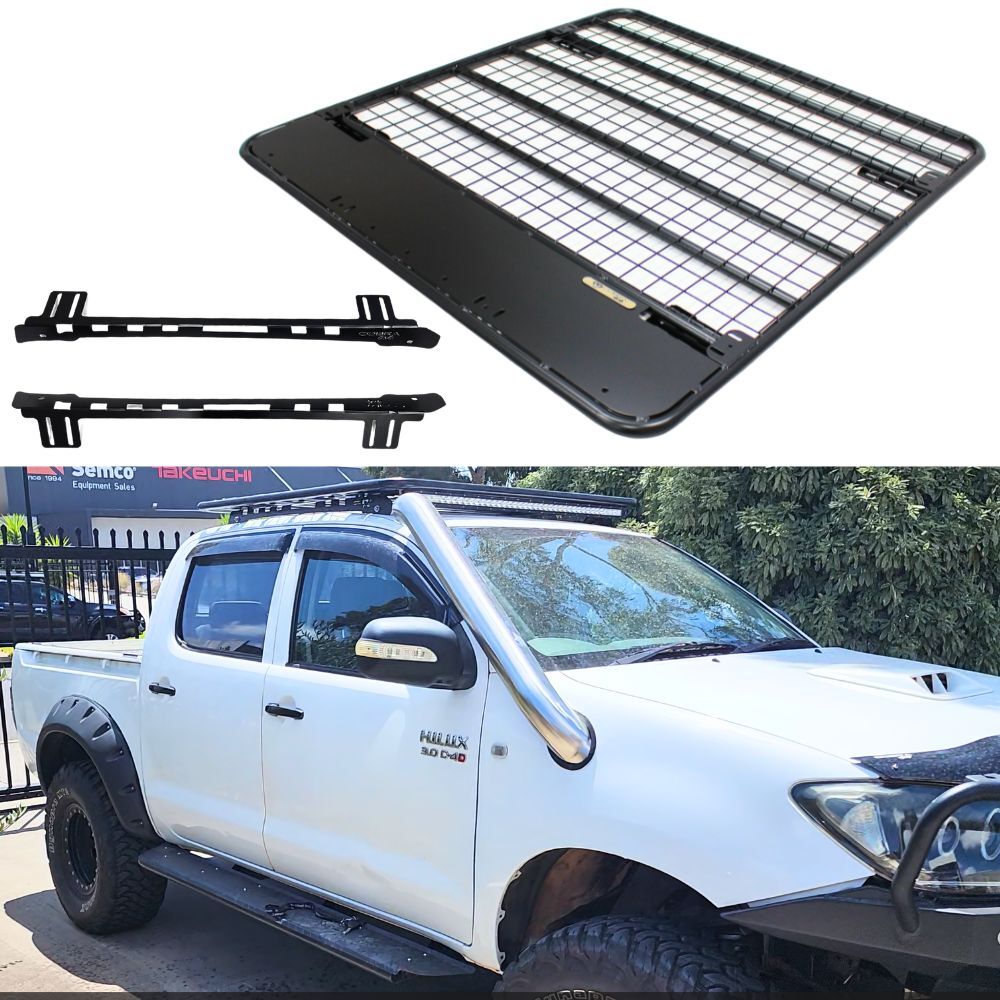 Awesome new Cobra 4x4 design flat steel roof rack, designed to suit Mazda BT50 2011 - 2020 dual cab models. Made from top-quality black powder-coated steel for longer-lasting protection and durability.