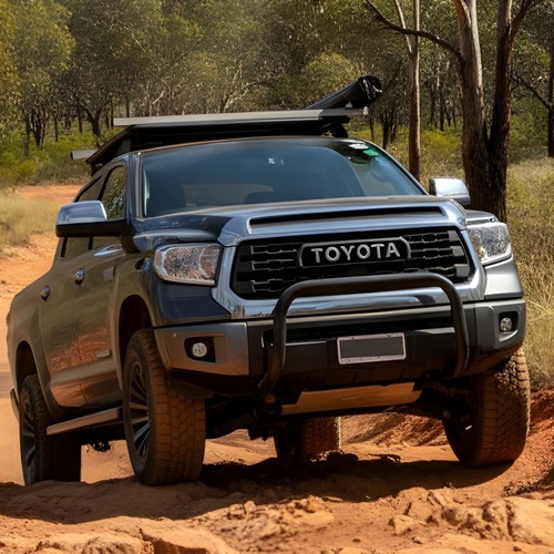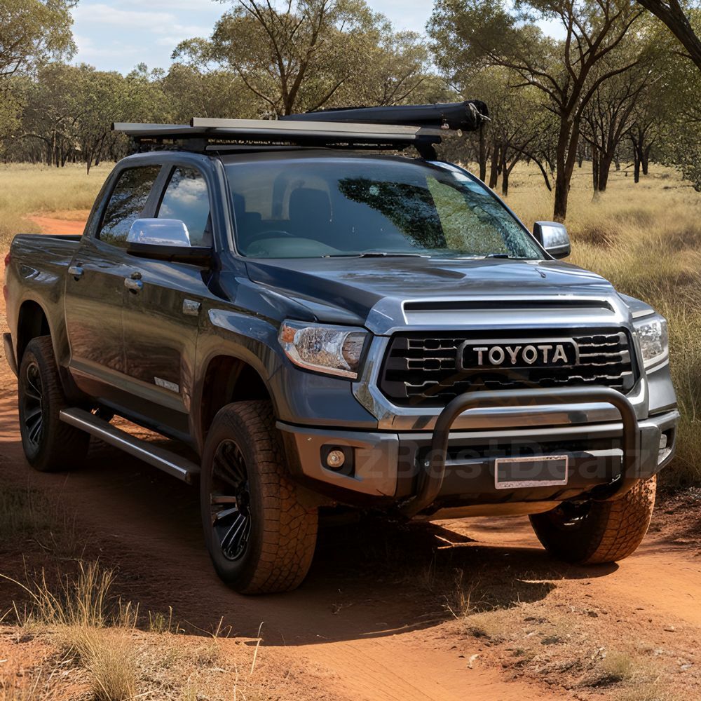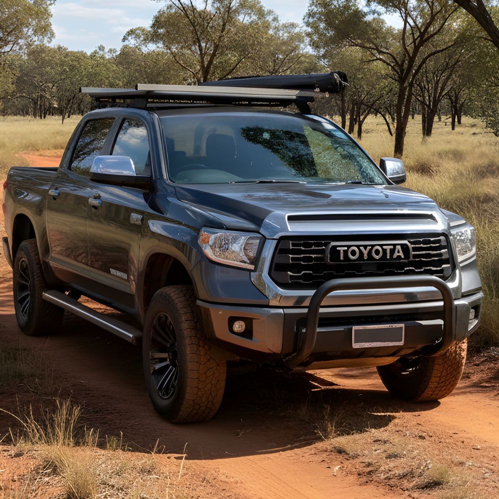 Awesome new design Cobra 4x4 flat steel roof rack, designed to suit Toyota Tundra dual cab models. Made from top-quality black powder-coated steel for longer-lasting protection and durability.