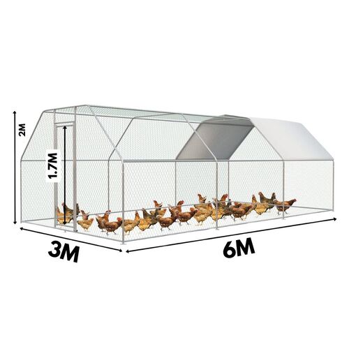 Looking for a spacious haven for your feathered friends? Look no further! Our premium chicken coop boasts an expansive 3m wide x 2m high x 6m deep space, providing ample room for up to 45 chickens or similar lovable critters. Crafted from durable galvanized steel, this coop is built to last, ensuring years of protection and comfort for your cherished flock.