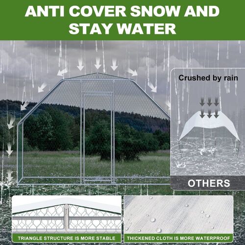 But that's not all! With a convenient walk-in design, accessing your coop has never been easier. Simply step inside through the secure door and experience the convenience firsthand. Plus, with the included PVC rain and UV ray cover, your poultry pals will stay cozy and dry, rain or shine.