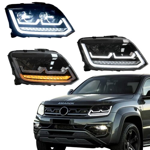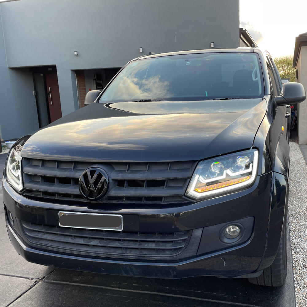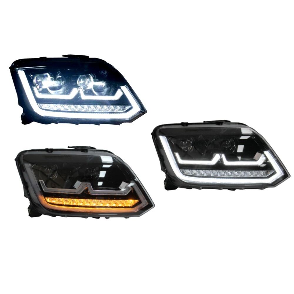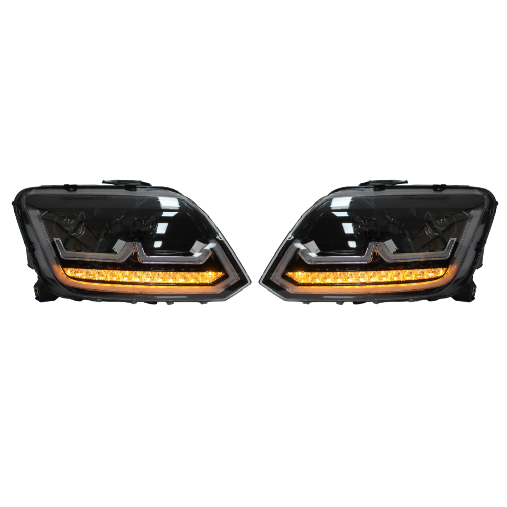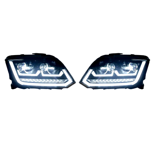 DRL Projector Headlights with LED indicators suitable for Volkswagen Amarok 2010 to early 2016 models that run halogen globes