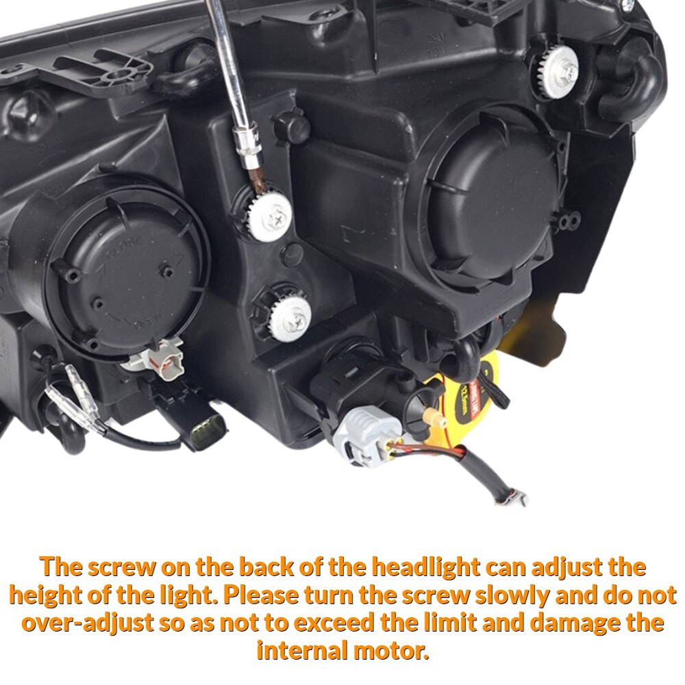 Note: The screw on the back of the headlight can adjust the height of the light. Please turn the screw slowly and do not over-adjust to exceed the limit and damage the internal screw.